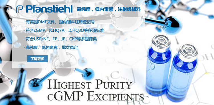 “熱烈祝賀Pfanstiehl的注射級甘氨酸Glycine(G-140)喜獲CDE登記號F20250000403, 這是Pfanstiehl產品獲得的第18個CDE登記號!”甘氨酸在醫藥輔料制劑中應用廣泛,, 可作為緩沖劑,增溶劑,穩定劑等,具有諸多優勢。Pfanstiehl秉承一貫高品質理念,為滿足全球生物制藥行業對于高品質甘氨酸的需求,隆重推出的注射級甘氨酸Glycine (G-140), 具有超高純度,超低內毒素,超低金屬殘留的特點,單獨檢測29種金屬離子,并且新增DNA,RNA,DNA酶,RNA酶和脂肪酶,亞硝酸鹽等多項質量指標的檢測,符合多國藥典規定(USP, EP, BP, JPE, ChP),可用于生物治療性藥物和疫苗的生產。產品信息:· 產品名稱:Glycine, High Purity, Low Endotoxin, Low Metals, USP, EP, BP, JPE, ChP (G-140)· 中文名稱:甘氨酸· 分子式:C2H5NO2· 分子量:75.07 g / mol· CAS號:56-40-6· 產品貨號:G-140產品特點: · 超高純度,超低內毒素,超低微生物含量,超低金屬雜質殘留· 質量指標新增DNA,RNA,DNA酶,RNA酶,脂肪酶和亞硝酸鹽檢測· 符合多國藥典:USP, EP, BP, JPE, ChP· 符合ICH Q3D標準· 符合GMP標準· 已獲DMF和CDE登記號 產品應用:· 緩沖劑· 穩定劑· 增溶劑如果您對Pfanstiehl注射級別Glycine G-140感興趣,歡迎聯系Pfanstiehl 中國區代理商北京西美杰科技有限公司獲得如下詳細的產品概況說明文件和測試樣品。Pfanstiehl Inc.最新產品系列如下,歡迎聯系北京西美杰科技有限公司獲取100g裝免費樣品。北京西美杰科技有限公司為Pfanstiehl中國代理,為客戶提供完善的技術支持與售后服務。歡迎撥打西美杰客服電話400-050-4006或者登陸網站www_xmjsci_com.m-cloud.net.cn了解更多信息。 更多>